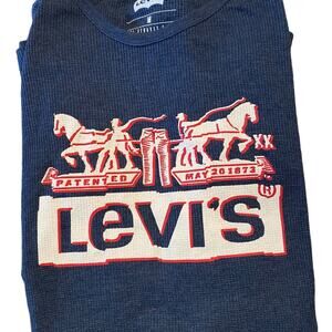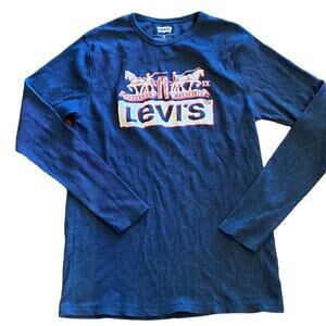 Levi’s Blue Waffle Weave Long Sleeve Blue Logo Shirt Mens Medium