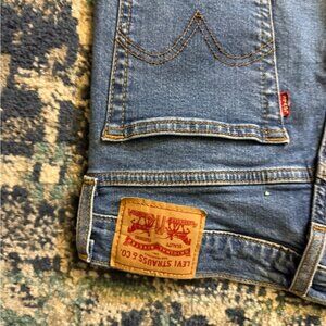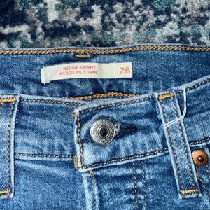 Stylish Levi's Wedgie Skinny jeans. Features classic blue denim and button closure.