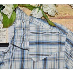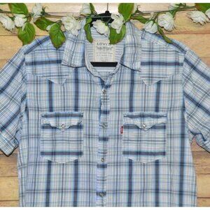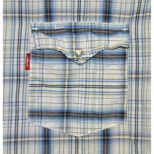 Levi’s Blue & White Plaid Pearl Snap Short Sleeve Button Up Western Shirt M