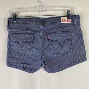 Levi’s Blue White Railroad Stripes 5 Pockets Low Rise Shorty Shorts 28