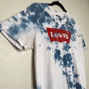 Levi's Blue and White Tie Dye Logo T Shirt Medium
