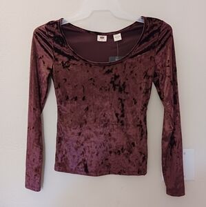 Levi's Bodega Long Sleeve Velvet Open Neck Shirt Top Size XS