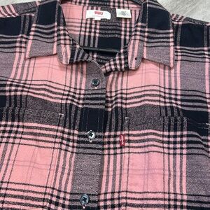 Levi’s Boxy Relaxed Fit Pink & Black Cotton Plaid Flannel Button-Up LS Shirt / M