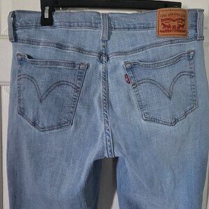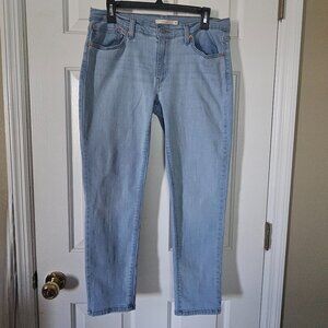 Levi's Boyfriend Mid Rise Women's Jeans size 30, in a light blue wash. These jeans offer a relaxed fit with a tapered leg, inspired by a "borrowed-from-the-boys" look.