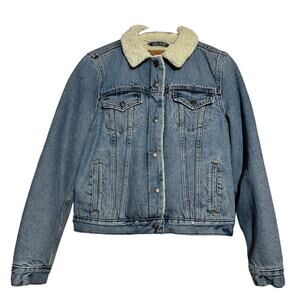 Levi's Boyfriend Sherpa Trucker Jean Jacket Addicted To Love Snap Button Blue M