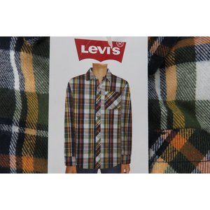Levi's Boys Button Up Rifle Green Flannel Shirt Small 6/7 NWT $40