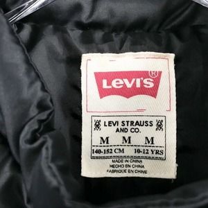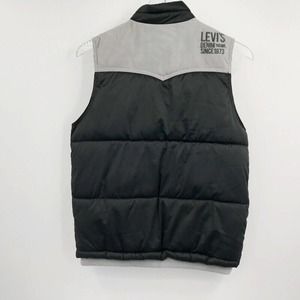 Levis Boys Puffer Vest Black Gray Color Block Lined Snaps Pockets M 10-12