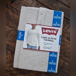 Levi's Boys Thermal Henley Long Sleeve Tee. Color: Oatmeal Heather. Size L (10-12). New.