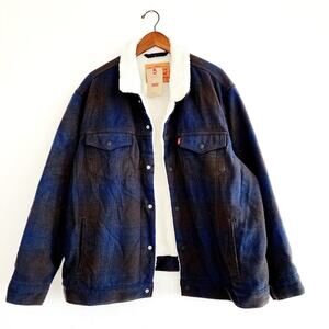 Levi's Brown & Blue Oversized Plaid Flannel Sherpa Lined Trucker Jacket Men's XL