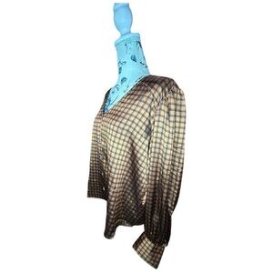 Levi’s Brown & Blue Plaid Button-Up Blouse Size XL
