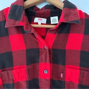 Levi’s, men’s flannel shirt, Buffalo plaid, red and black flannel, button-up shirt, brushed cotton shirt, casual shirt, vintage style, outdoor wear, lumberjack shirt, long sleeve shirt, checkered shirt, classic flannel, Levi’s red tab, workwear shirt, warm shirt, cozy flannel, fall fashion, winter shirt, plaid shirt.