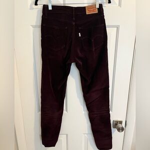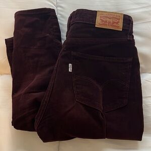 Levis Burgundy Red Corduroy Button Fly 721 High Rise Skinny Pants Size 25