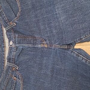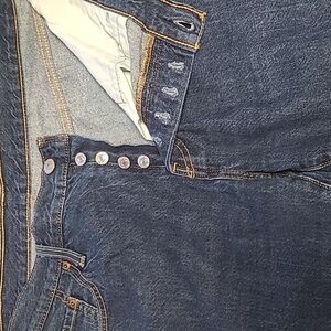 Levi's brand. 5 button fly. Straight leg. Fabric is 100% cotton. Laundered on cold cycle and line dried.
