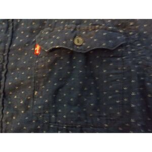 Stylish Levi's blue button-up shirt for men, size XL. Features an all-over print design and is long-sleeved, perfect for any occasion.