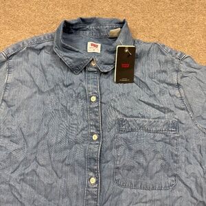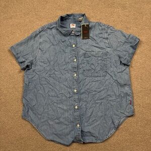 Levi's Button Up Shirt Size M Blue Short Sleeve Chambray Denim Western