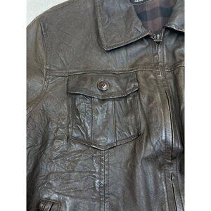 Levi’s Capital Mens Brown Leather Jacket With Pockets & Checkered Lining Sz Larg