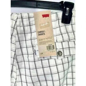 Levi’s Men’s 30 Relaxed Fit White Tab Cotton Cargo Shorts White Black Plaid NEW. Measurements in photos. Fast shipping!