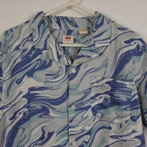 Levi's Casual Button Front Shirt Men's Size S Blue Marble Print Camp Shirt