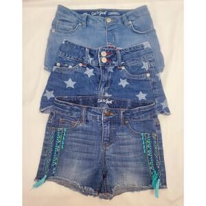 Levis Cat & Jack Girls Size 7 8 Lot Embroidered Blue Jeans Shorts Stretch Shorty