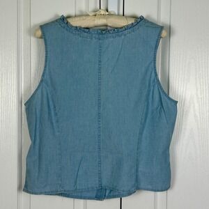 Levi's Chambray Sleeveless Top Ruffle Neck Button Front Tank Blouse Large