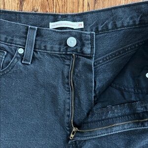 Like NEW Levi's high waisted mom shorts in charcoal with classic red tab. Features signature leather patch.