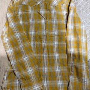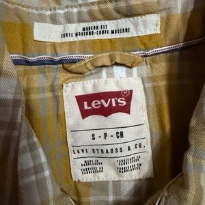 Levi's shirt with a checkered pattern. Features tan and white colors. Modern fit style. With pearl buttons