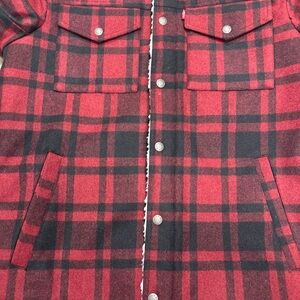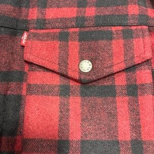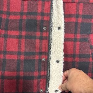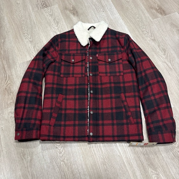 Levi's Cherry Plaid Trucker Wool Blend Sherpa Jacket Mens Size Small Warm