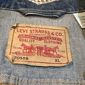 Timeless Levi's denim jacket. Features button front and chest pockets. Ideal for layering.