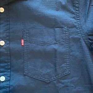 This blue button down has a cool texture/look with subtle lines. Material is 100% cotton.