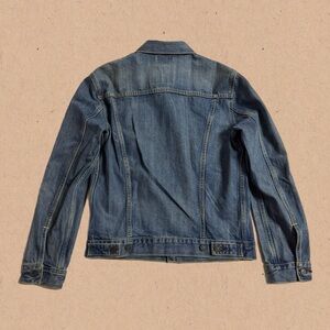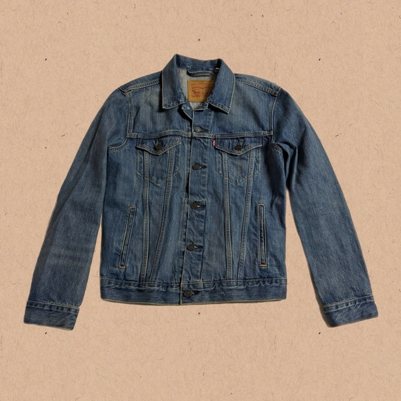 Levi’s Classic Denim Jacket, also known as the Trucker Jacket. Its style endures beyond seasons and trends. It’s hard to find a jacket with an easier shape, more versatile weight or inherent sense of cool. Levi’s branded metal buttons and tapered stitches make it instantly recognizable. The piece has never been worn. It’s a Medium but fits more like a Small.