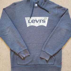 Levi's Classic Distressed Logo Size Small Mens Heatherd Blue Hoodie Pullover . Condition is Pre-owned - Good. Shipped with USPS Ground Advantage.