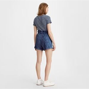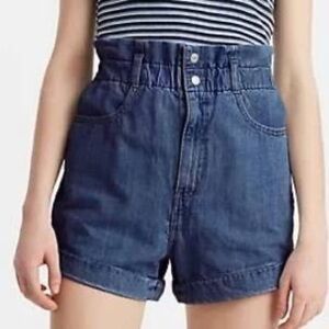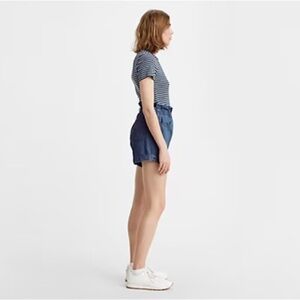 Levi’s Classic High-Waisted Paperbag Cuffed Mom Denim Jean Shorts Dark Wash Blue