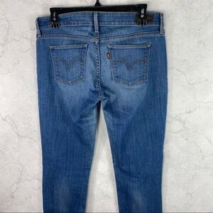 Levi's Classic Slight Curve Skinny Denim Jeans. Front & Back Pockets. Button & Zip Fly. Belt Loops. Modern Rise. Light Blue Distressed Wash. Cute & Comfy. Stretchy. Great Condition. No Stains or Rips.