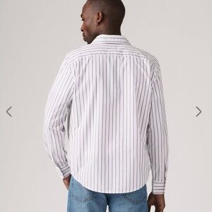 Levi’s button-down shirt, striped men’s shirt, purple and white shirt, Levi’s XL shirt, classic pocket shirt, standard fit Levi’s, casual men’s shirt, timeless button-up, long sleeve shirt, Red Tab Levi’s shirt