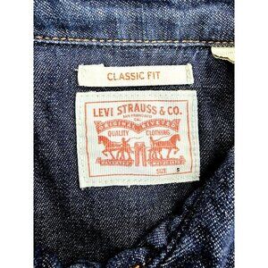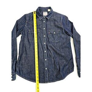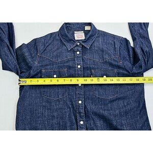 Levi's Classic Size Small Women Blue Pearl Snap Logo Tag Long Sleeve Denim Shirt