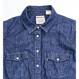 Levi's Classic Size Small Women Blue Pearl Snap Logo Tag Long Sleeve Denim Shirt