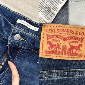 Levi’s Classic Straight Mid Rise Maui Waterfall Jeans Vintage Dark Wash Denim