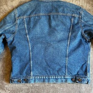 Classic blue denim jacket by Levi's. Features button closure and chest pockets.