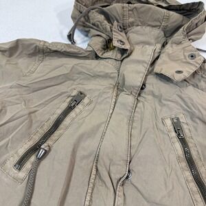 Levis Coat Jacket Women M Biege Hooded Full ZipCasual Pockets y2k Cotton