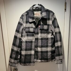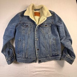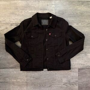 Stylish Levi's denim jacket. Features button closure and chest pockets. Ideal for casual wear.