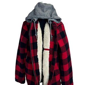 Levi's Cotton Buffalo Check Sherpa Lined Jersey Hooded Shirt Jacket Men's size M