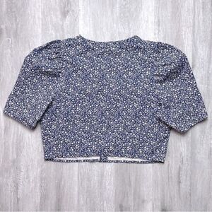 Size XL cotton short sleeve button down crop top. Small flower print throughout. New with tags.