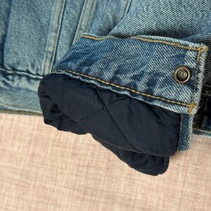 Cozy Levi's sherpa jacket. Features cream color. Lining in sleeves is quilted. Cropped length. Perfect for warmth and style.