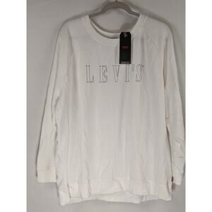Levi's Crewneck Sweatshirt Trendy Plus Size Metallic Logo Serif White 1X Cozy