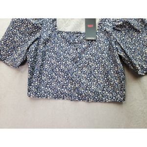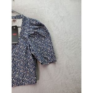 Levi's Crop Top Womens Small Multi Floral Cotton Joella Puff Sleeve Button Front