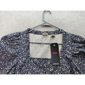 Levi's Crop Top Womens Small Multi Floral Cotton Joella Puff Sleeve Button Front.