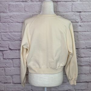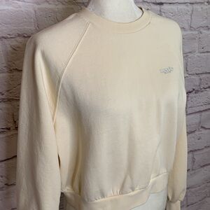 Levis cropped crewneck sweatshirt. Mid weight cotton/polyester fleece in cream. Womens size small. Great used condition.