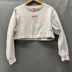 Levi's Cropped Sweatshirt Womens Small Off White Red Center Hit Pullover