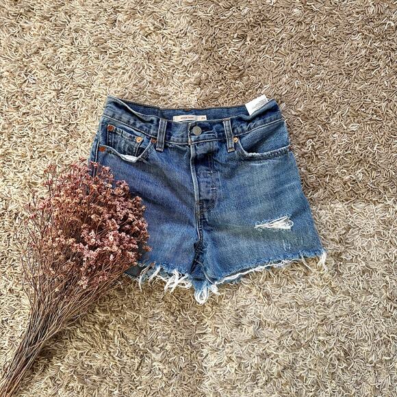 Levi’s Cut Off Blue Ripped Denim Jean Wedgie Shorts Womens Size 26