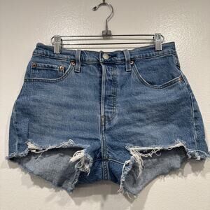 Levis Cut Off Shorts Women’s Size 28 High Rise Button Fly Denim Distressed READ